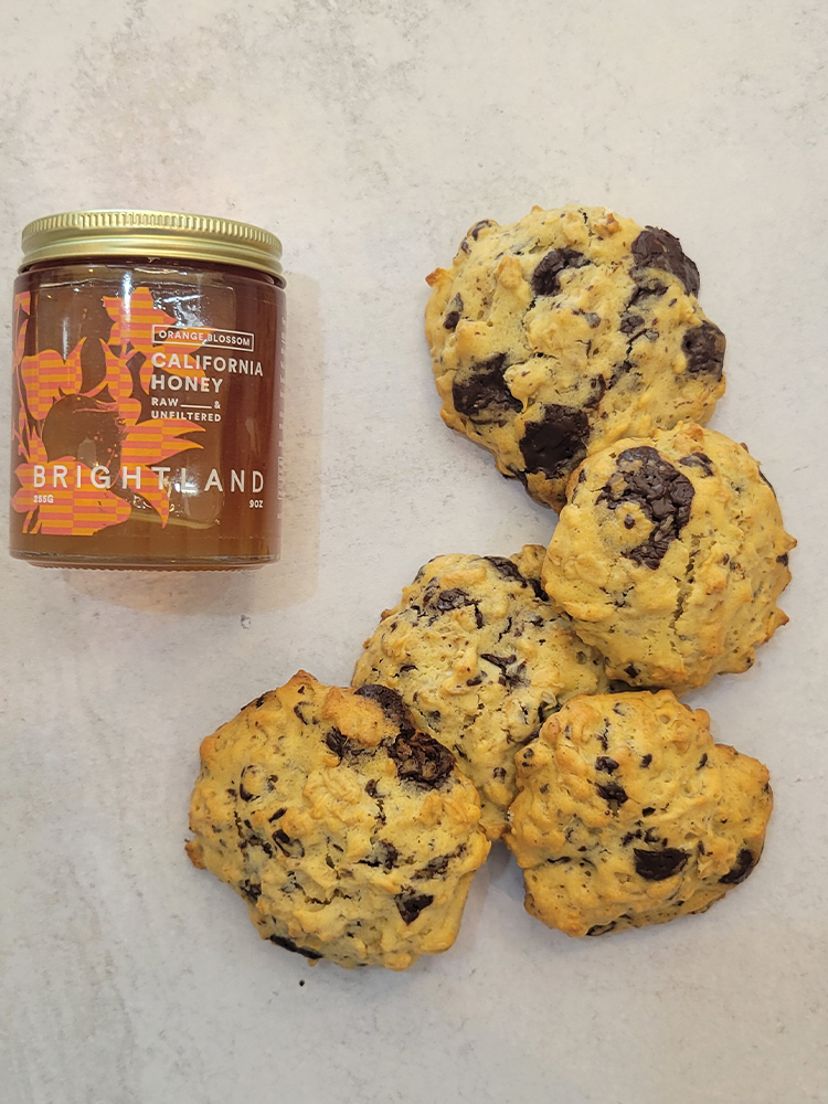 When I started baking my own version of oat cookies, I wanted to add a twist by using orange blossom honey and chocolate chips. However, the end result was not what I had anticipated – it was something even better! The texture was a perfect balance between a cookie and a scone, both chewy and sandy. The addition of orange blossom honey added the perfect amount of sweetness, while the dark chocolate chips gave the Scookies character.