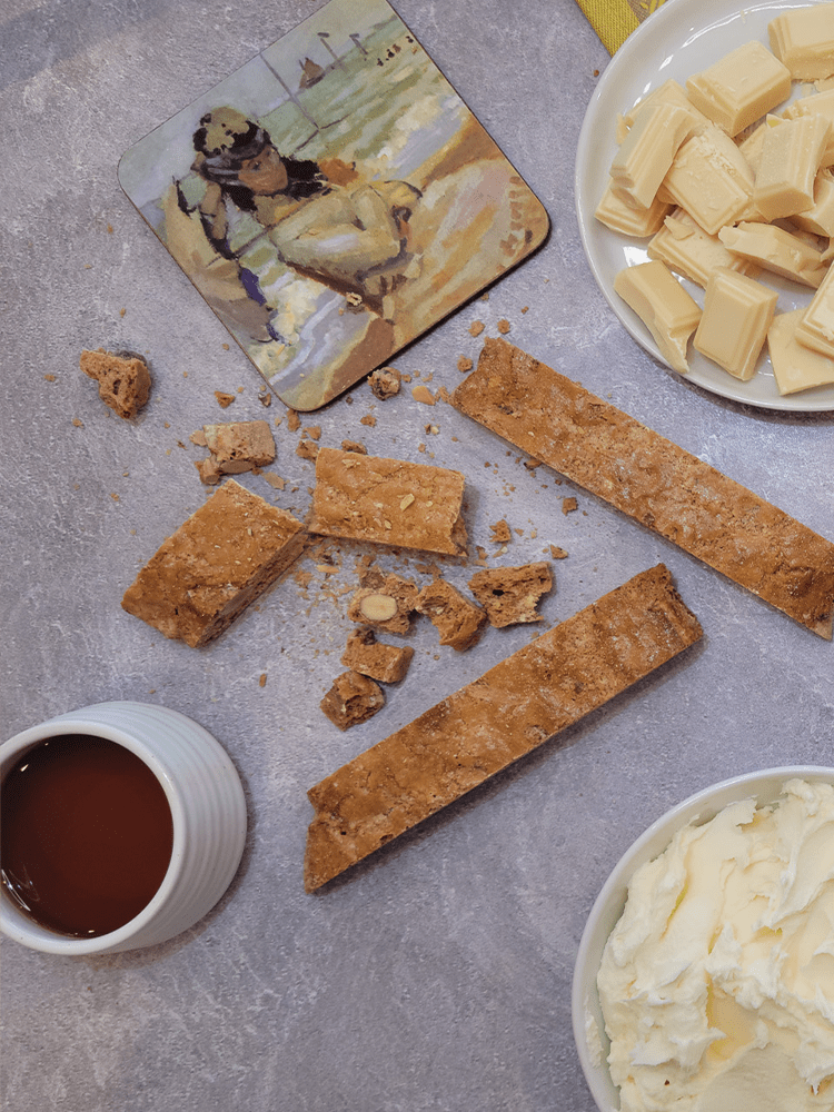 - Break the biscotti into small pieces to create a crumble-like texture.