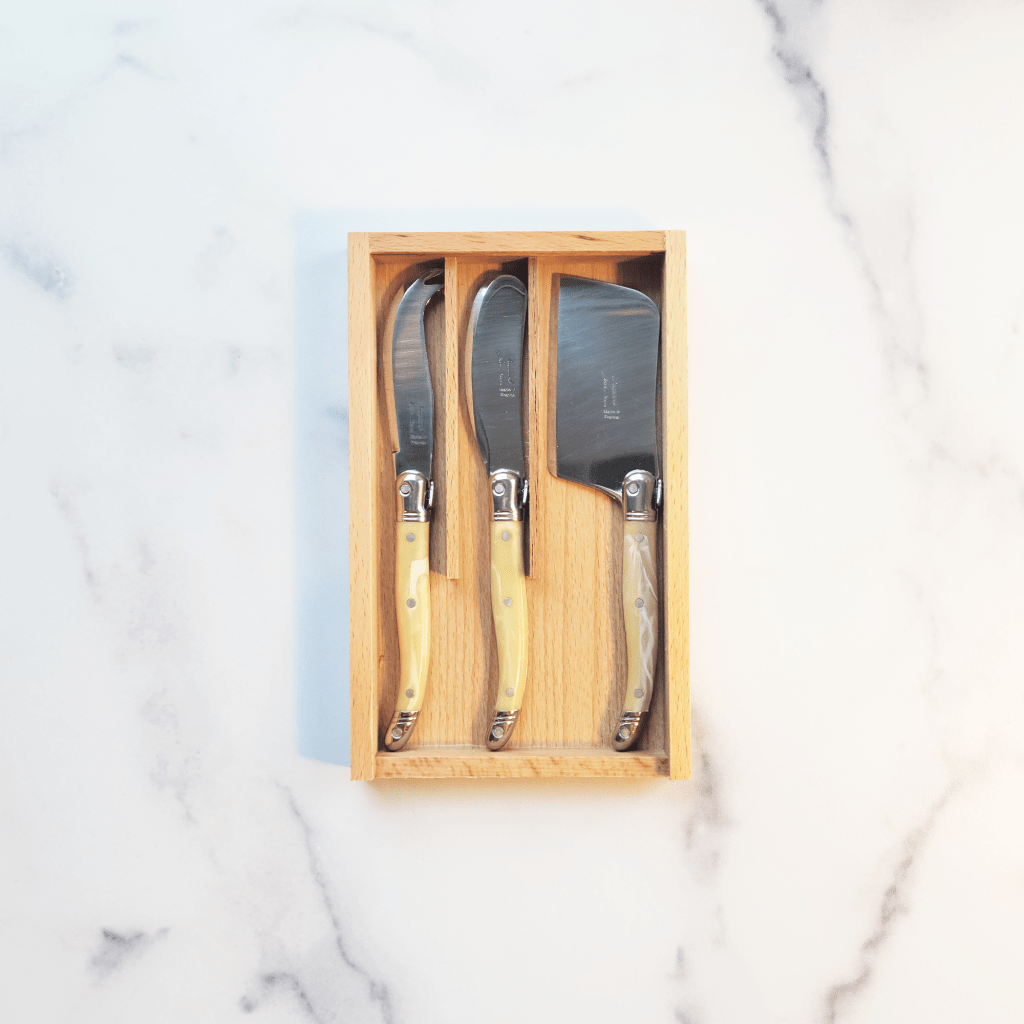 Take your cheese board to the next level with our high-end Laguiole cheese set. Which color will be yours?