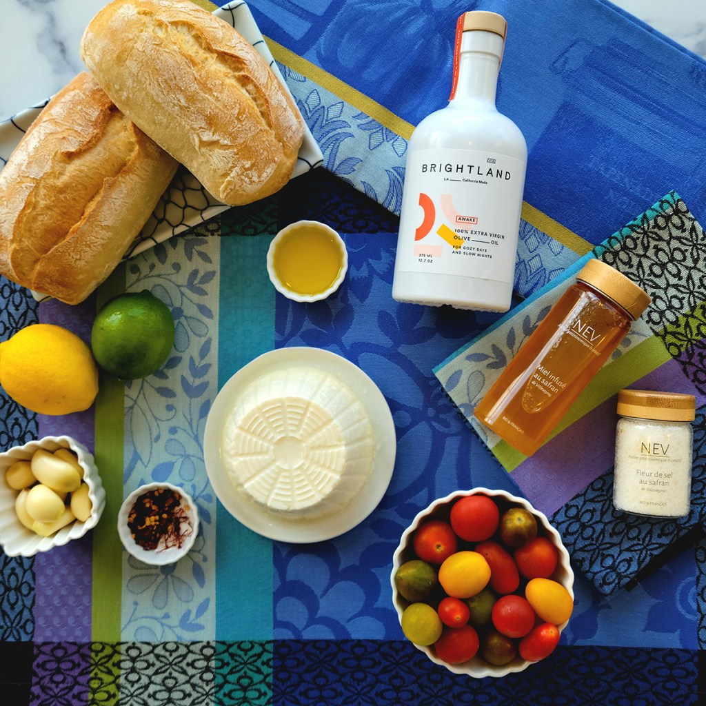 - Add the remaining Brightland Awake Extra Virgin Olive Oil, the Saffron Infused Honey from Nev, zest of lime and citrus, their juice, and the last tsp of Saffron Infused Sea Salt from Nev.