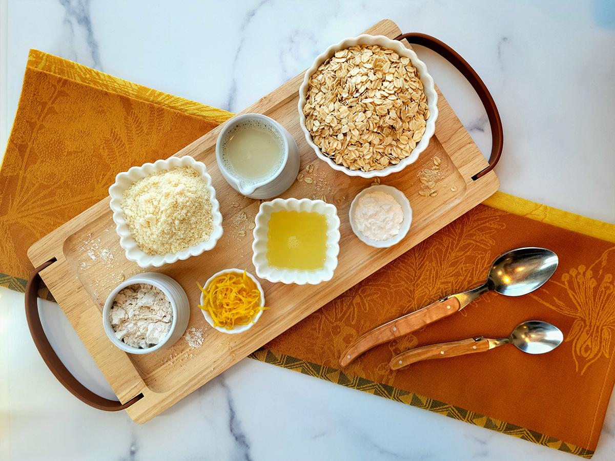- Begin by taking a medium-sized bowl and combining the oats, almond flour, lemon zest, and baking powder.