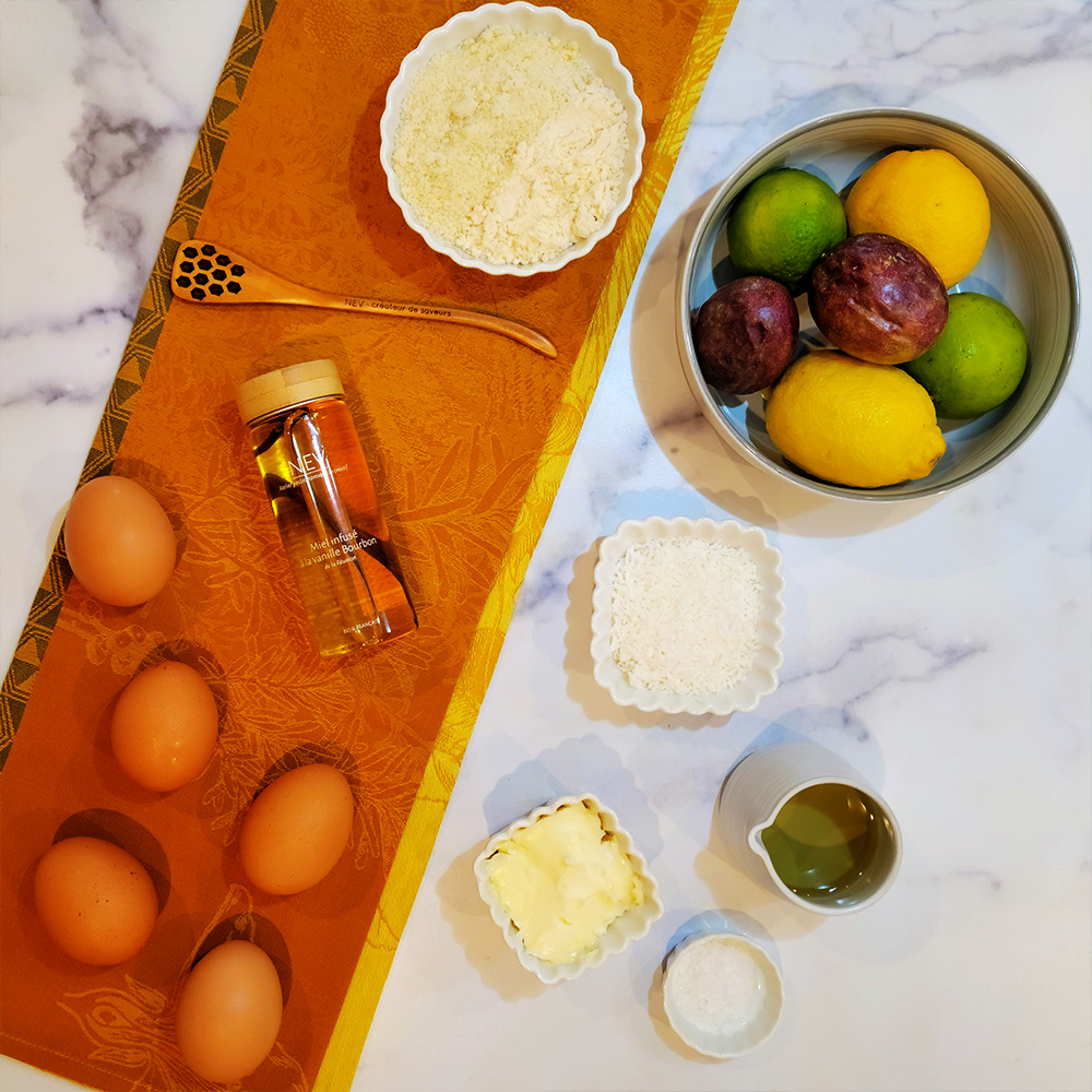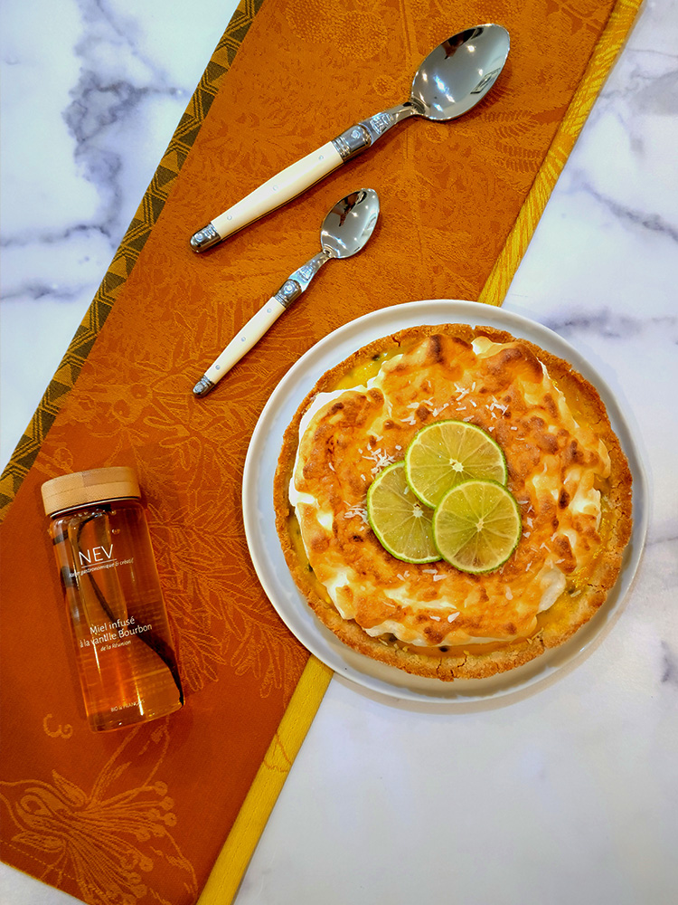 - In a small bowl, mix the pulp of the passion fruit with the juice of 1 lime, 1 lemon and the Organic Honey infused with Vanilla from Nev.